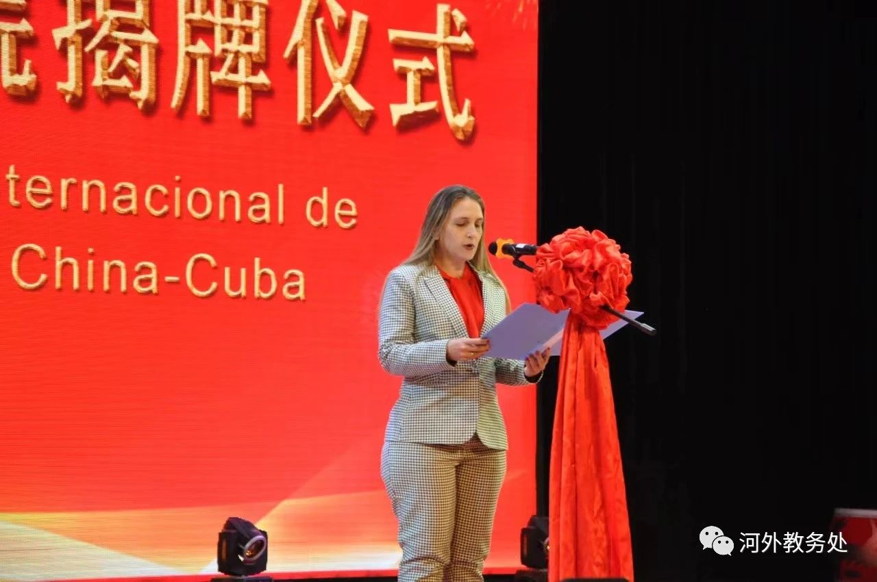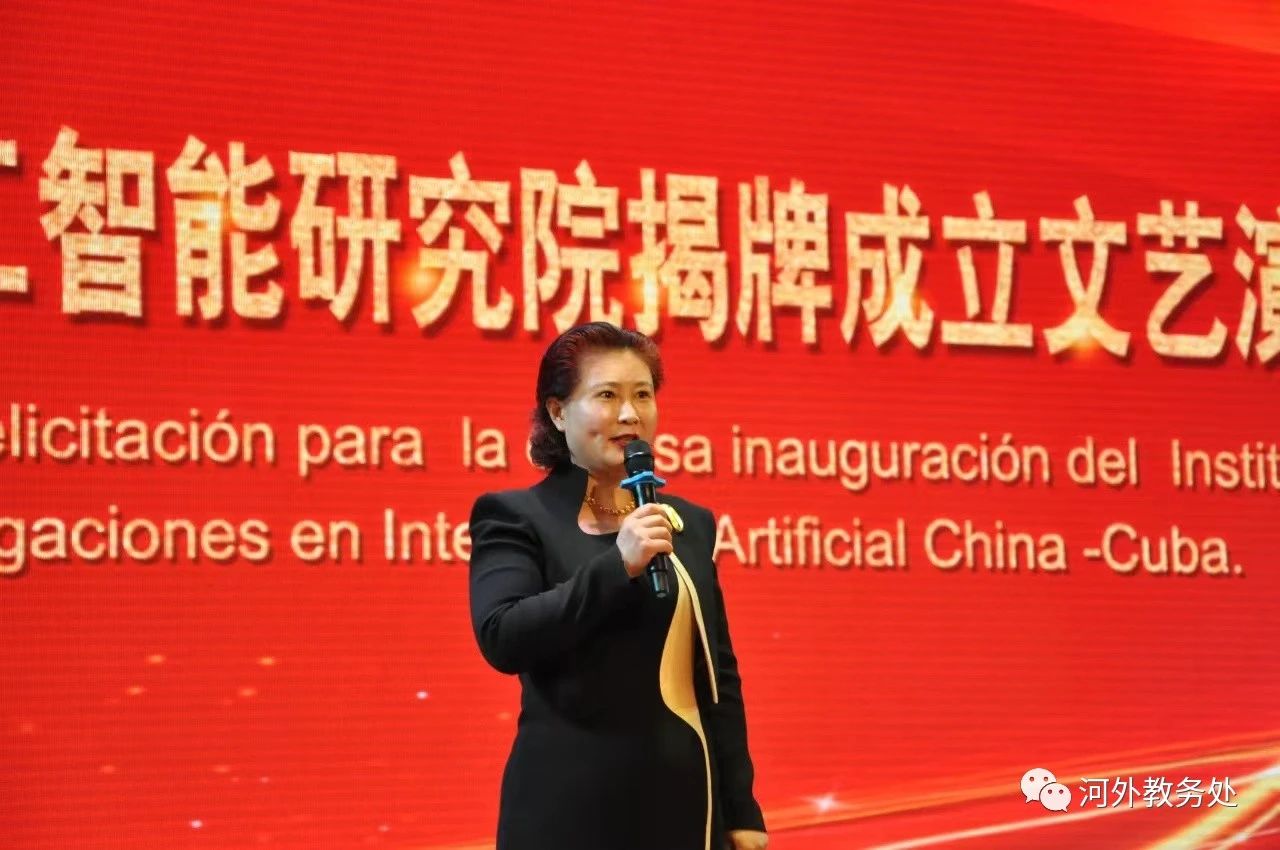 古巴高等教育部、古巴驻华大使馆、河北省科技厅、河北省社会科学院、河北省人民政府外事办公室、河北省科技厅外国专家局、古巴卡马圭大学、拉斯维亚斯中央大学、河北外国语学院等单位领导为中古国际人工智能研究院剪彩和揭牌